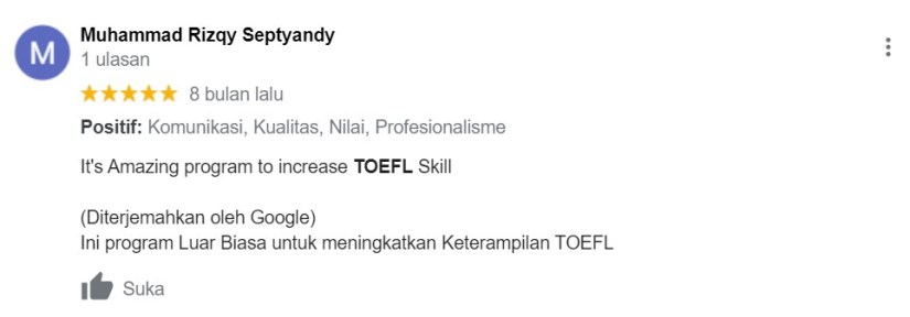 Berikut adalah beberapa testimoni untuk program “Rumah TOEFL”.